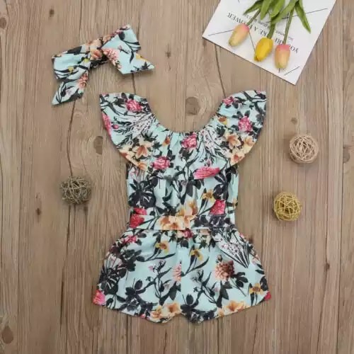 Off the shoulder romper with matching hair bow